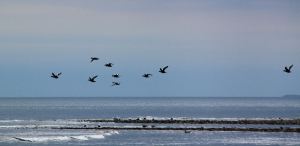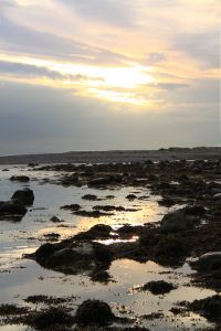 Getting closer. The groins arrest long-shore drift, a process which adds great variety to the rocks contributing to the pebbles on the beach