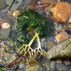 However, as I walked someway morosely along the grey beach by the grey sea under the grey sky my attention was suddenly taken by the richness of the micro-environment. Seaweeds, shells and multicoloured pebbles, products of a tidal range considerably greater than the 6 inches in the Aegean, almost shone in the grey light. Birdlife too, oyster catchers, gulls, herons, curlews, cormorants and even swans, thriving in the food-rich habitat of the intertidal range and the small estuary where the fresh water met the salt. I saw more birds and more species of birds in 10 minutes than in 3 months on Symi.