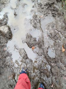 While I was slithering, cursing, and trying to protect my knee from sideways pressure, I ruminated about why it was so bad. The conclusion was staring me in the face in the shape of the myriad squelchy boot-prints. The problem is that the authorities encourage walking in the area with signed trails, maps, visitor centres and the like but the paths cannot take the amount of foot traffic given how wet climate and the ground are. It is only to be expected that an area of waterfalls has a lot of rainfall and surface water run-off. In places the path has been gravelled and compacted, in other places duck-boards have been put down but nowhere near enough to protect the ground from the damage it is suffering.
