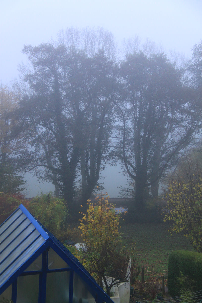 Open the curtains first thing in the morning and the view is across to the green 150 metre-high ridge on the other side of the valley, at this time of the year with the sun just appearing over the crest. But not today. The mist which filled the valley was even thicker than that in my head. The trees, leafless now except for the Douglas Fir which I planted 30 years ago and which now tops the native ash, alder and sycamore, were just visible at the end of the garden but the world beyond had disappeared.