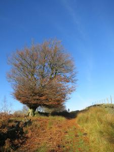 With the sun on our backs the walk along the ridge top was very pleasant and we didn’t hurry. In places there was a thin skin of ice on some of the pools of water which had been out of the sun. The drop down to the Goose and Cuckoo from the ridge-top path took us into deep shade and a different world with pockets of white hoar frost.