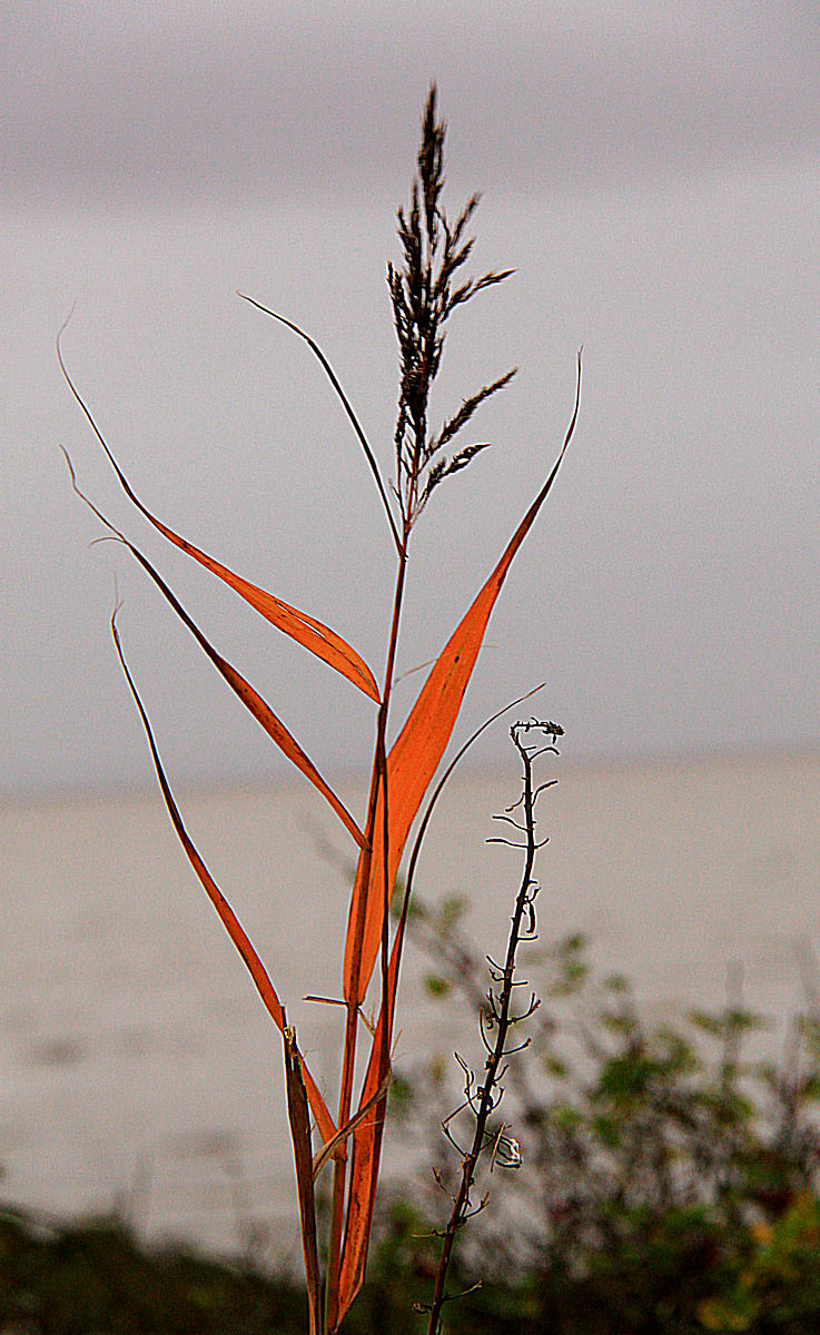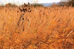Rich colour in the reed beds even in the gloom of dusk on a grey day