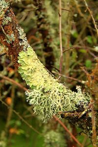 Almost fluorescent, moss and lichen cover bushes in particularly damp and shady locations