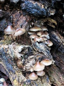 The fact that there have been no sub-zero temperatures and that it has been very wet has meant that going out in the garden on Monday was depressing. Instead of Autumn leaves rustling underfoot they were a sodden mass collected in corners by the strong winds. The soil, always heavy, was way too wet to work on. But on the plus side fungi were thriving and here and there a few wet-tolerant plants were still in flower.