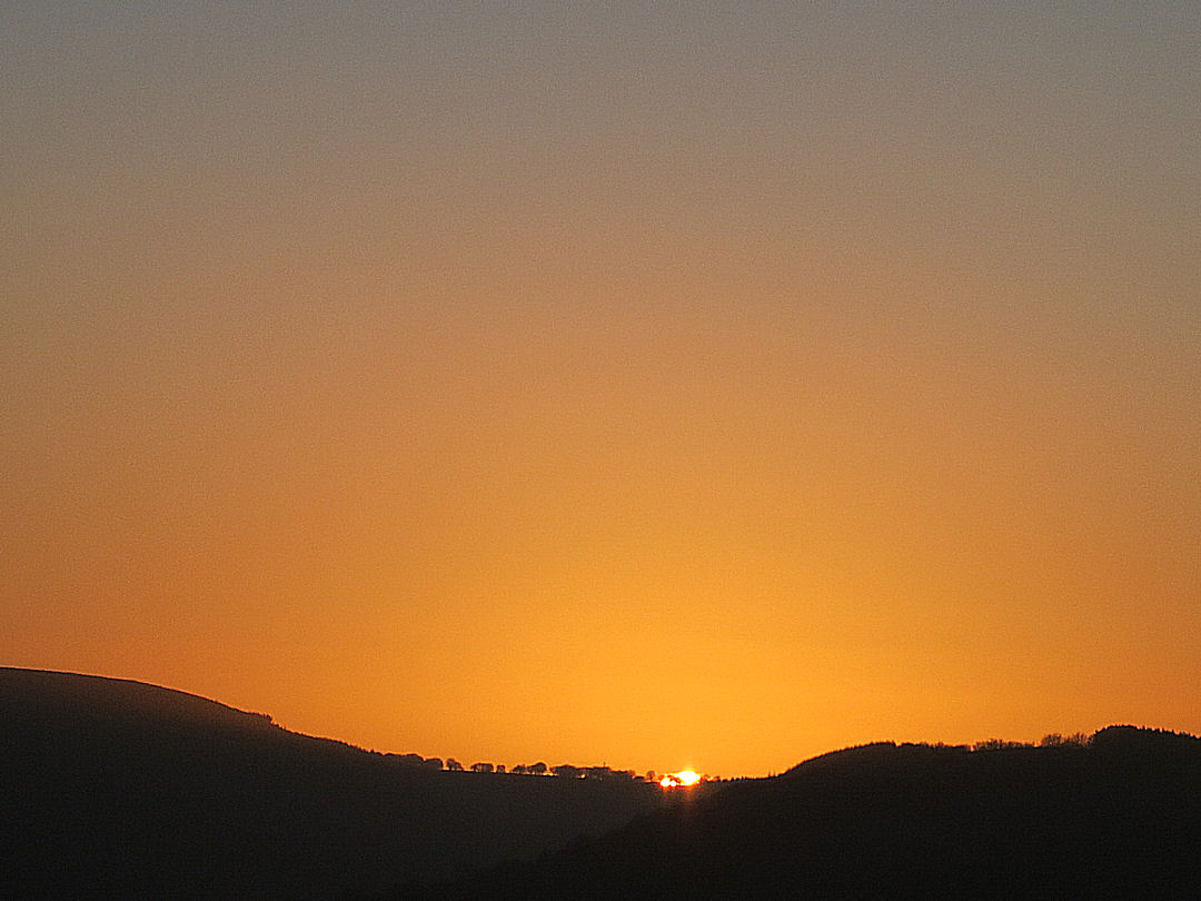 And it was great.  I was heading for an evening meal at my son’s house on the other side of the mountain and timed it to get to the top of the ridge as the sun was going down behind the ridges to the west.  With a distinct chill in the air and frost pending the sky was crystal clear and I sat on a stone wall for half an hour watching the sun dip down and disappear.  Magical.