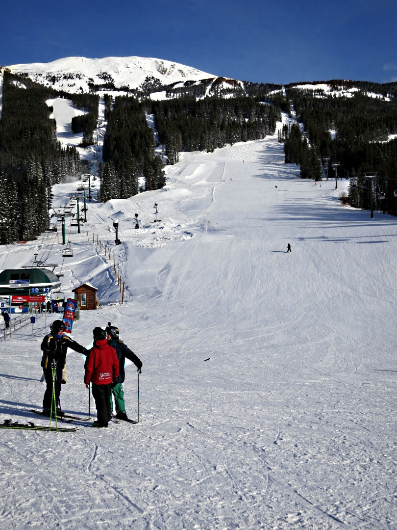 Truth of the matter is that, no matter how hopeless I am, the skiing is just the means to an end. It means that I can be up in the high mountains in winter which is fabulous. Highest I’ve been so far is Lookout Mountain at Sunshine, just short of 9000 feet. Very windy. Very cold. Great views. Very enjoyable.