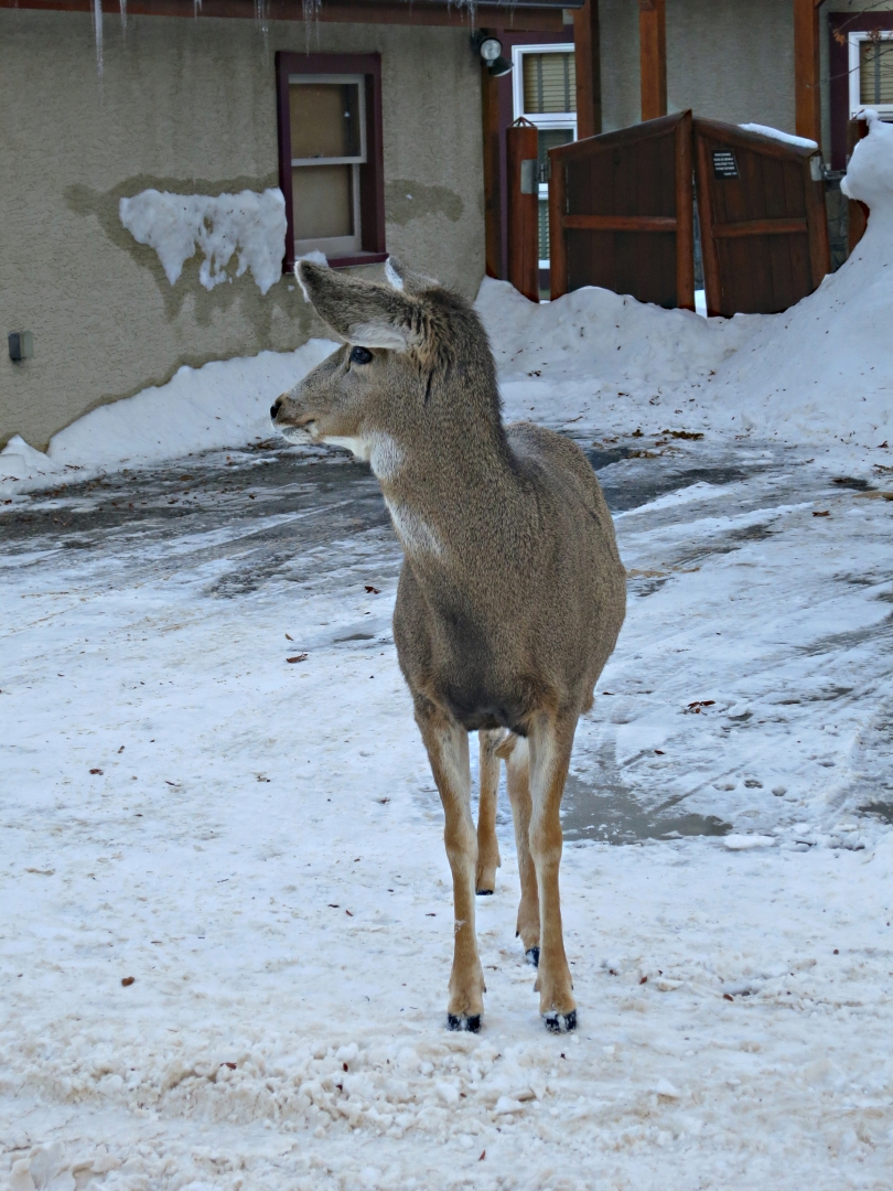 It served as a reminder that the wildlife in the Rockies is …. wild. There are big things out there which kill and eat other big things. Of the larger predators, as well as coyotes and wolves there are cougar, lynx and wolverine as well grizzly and black bears, the later thankfully hibernating at this time of year. There are many deer and elk and a remaining few caribou so it should really come as no surprise that there are freshly killed carcasses around. It’s just that they aren’t usually so highly visible.