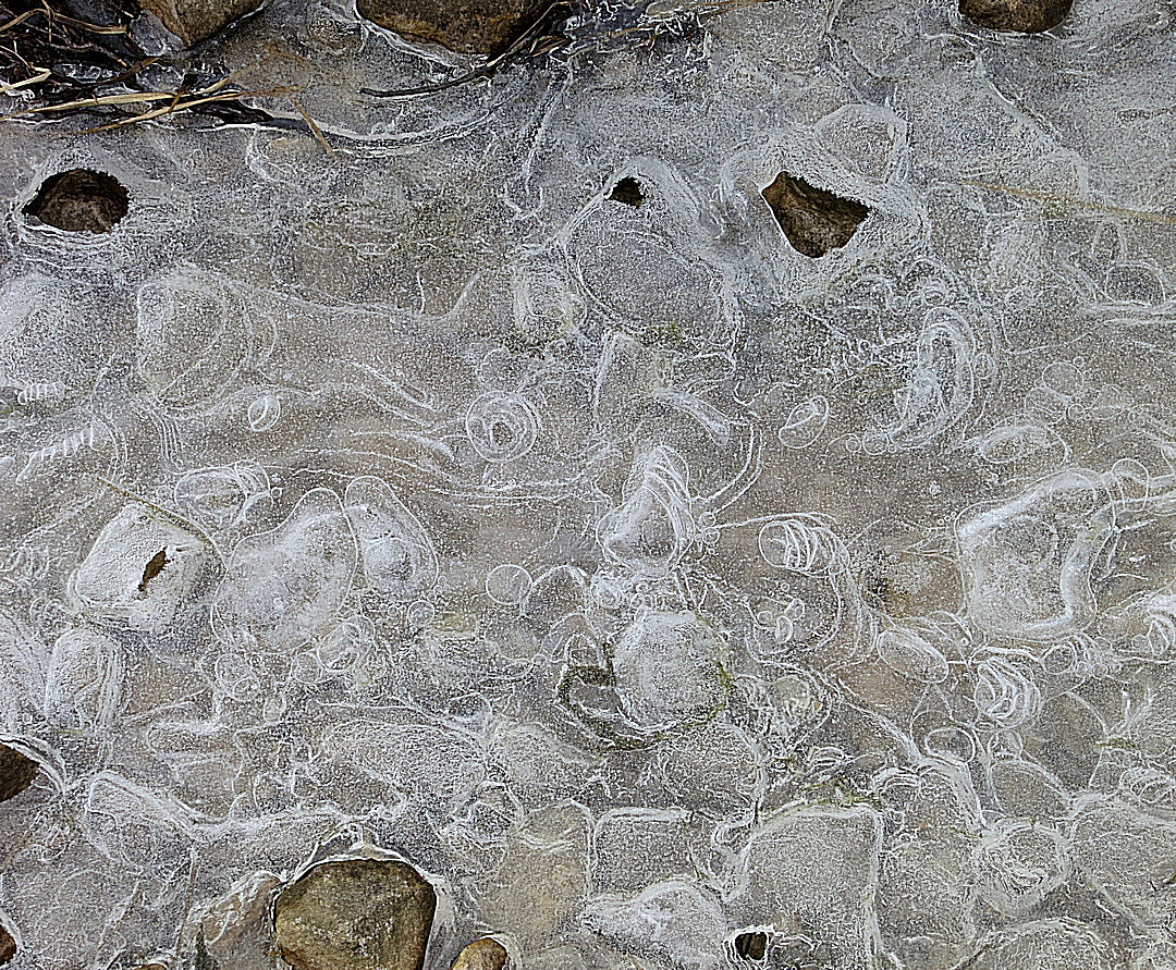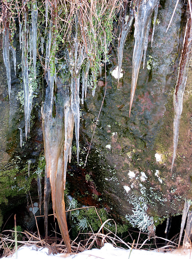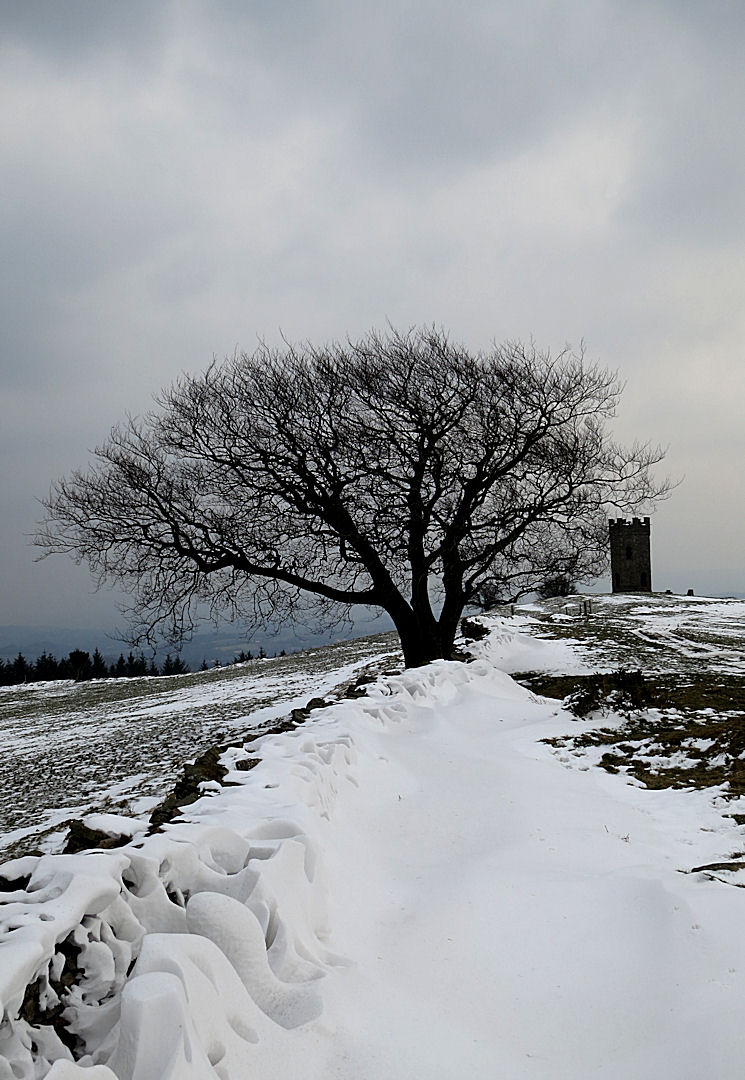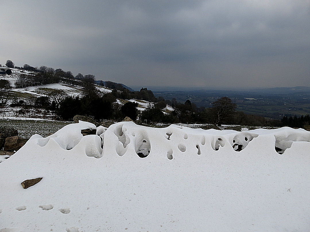 The walk was great. There was more snow on the ridge than I had expected and it had been drifting in the wind into weird shapes and patterns. Surface water had frozen like works of modern art. It was slow going, particularly as I didn’t stick to the path but wandered all over the ridge top with the camera, repeatedly telling myself that I needed to stop messing about and start to make some forward progress.