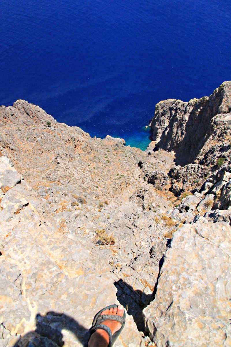 The views to the south are as dramatic as they come. Just short of 500 metres straight down to a clichéd-blue sea. In a strong, swirling wind I daren’t get too close for my ‘on the edge’ photos’.