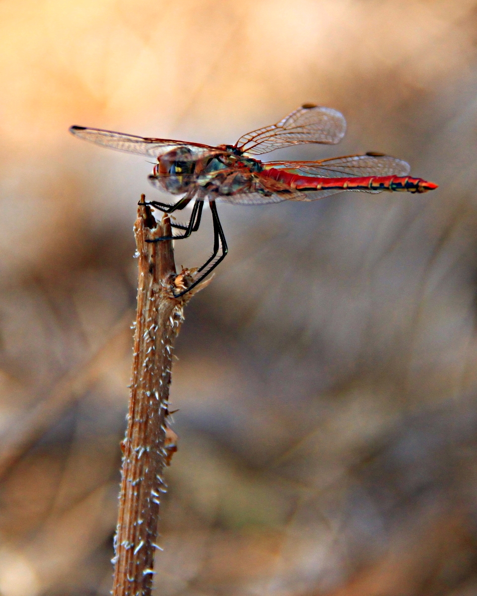Dragonflies I have a always associated with ponds and wetland but I have seen them here on arid, rocky mountain tops. For some reason they often seem to perch on the top of dry sticks as if they using them as drinking straws. I have no idea what this behaviour is.