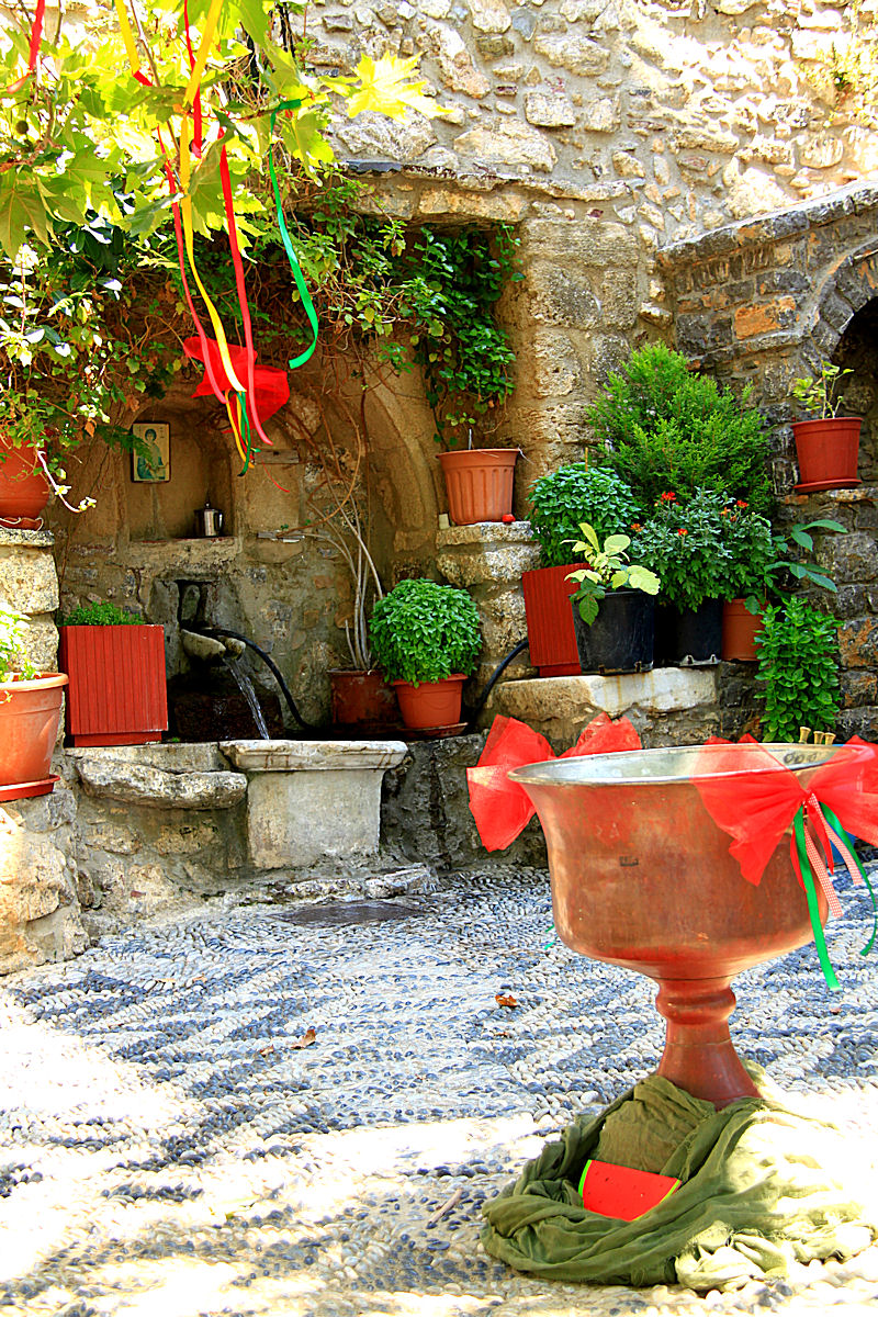When we first went to the monastery nearly 15 years ago a number of elderly local ladies got off the bus clutching bags full of empty 1½ litre water bottles which they filled from the spring gushing out of the mountain at the side of the monastery entrance, ready to take back on their return. It was a weekly ritual. The water is wonderfully sweet and cool though whether it has the beneficial health effects some attribute to is another matter. The ladies were certainly considerably older than me and had no problem lugging half a dozen or eight full water bottles around, so …. maybe ?!?!?!?.