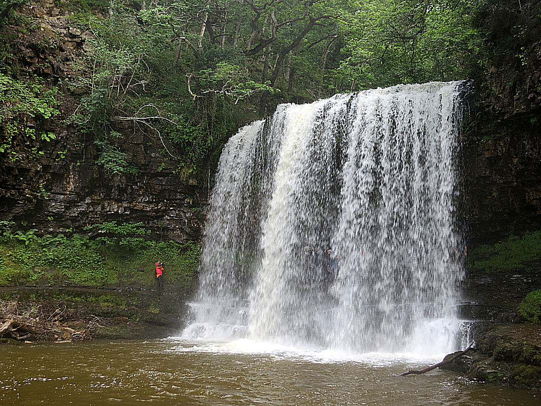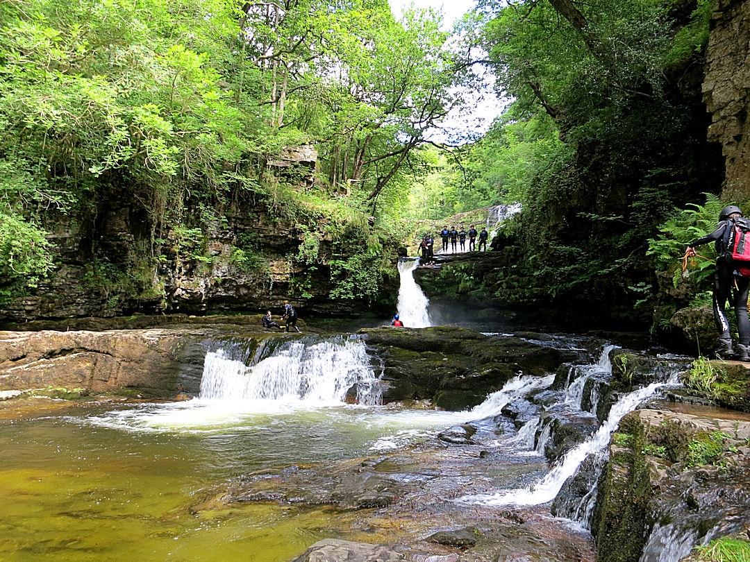 Given the fear of the Damocles Sword of litigation which has crossed the Atlantic and seriously infected the UK it is encouraging that a spirit of adventure still persists. Truth be told I had to resist a very strong temptation to strip off and jump off the ledges into the plungepools myself …. but fear of arrest for indecent exposure held me back. We contented ourselves with walking behind the crashing water of Sgwd yr Eira.