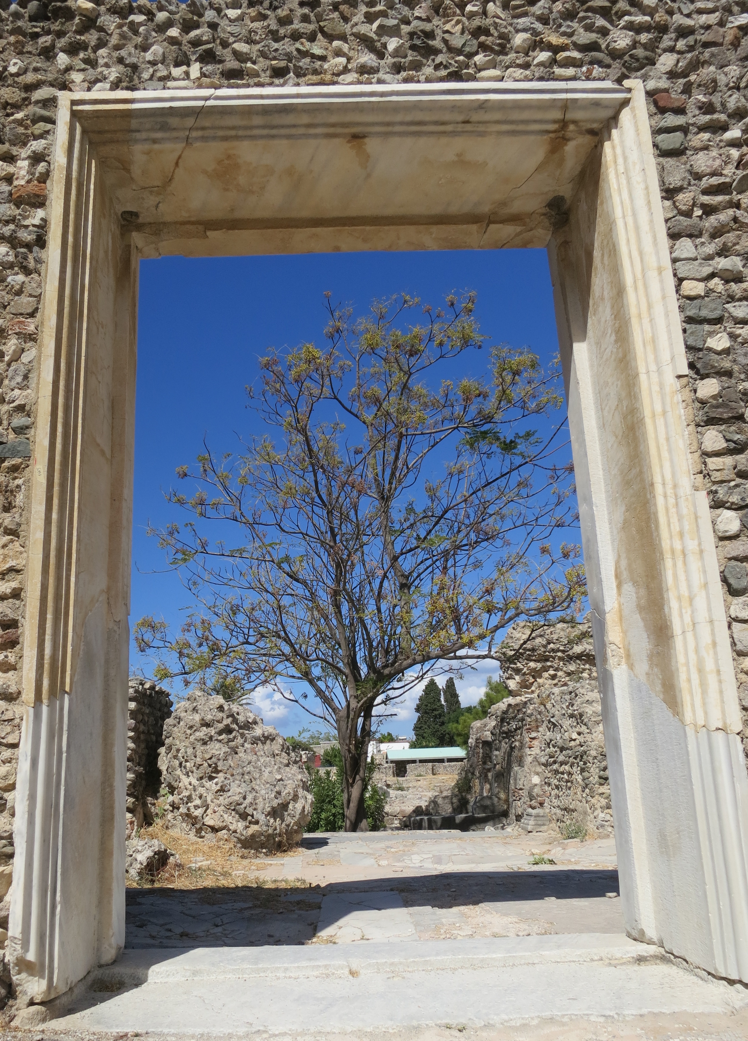 At the end of my stay on Nisyros I moved on to Symi but as there was no direct link at a civilised hour (the 05.30 Big Ship connexion on Friday’s doesn’t appeal) again it was a matter of high speed cat to Kos and then another high speed cat to Symi. Once more a couple of hours to explore yet another archaeological site, this time the Western Excavation alongside the inner ring road, less than 15 minutes walk from the harbour and 5 from the bus station All very civilised and for someone with a very low boredom threshold like me, a real life-saver.