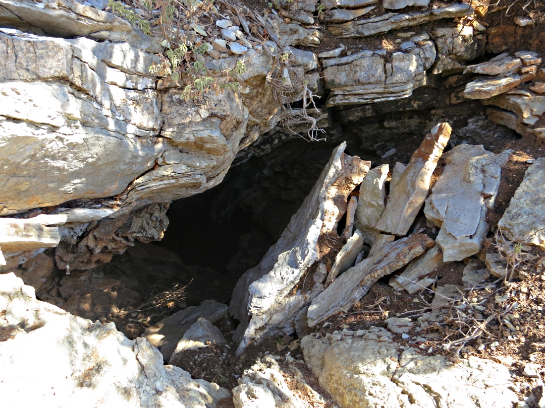 There is a cave, Spilia Skordhalou, part way down the long path from the spine of the island to Nanou Beach but though a fairly large opening that also had no depth and no obvious way on.