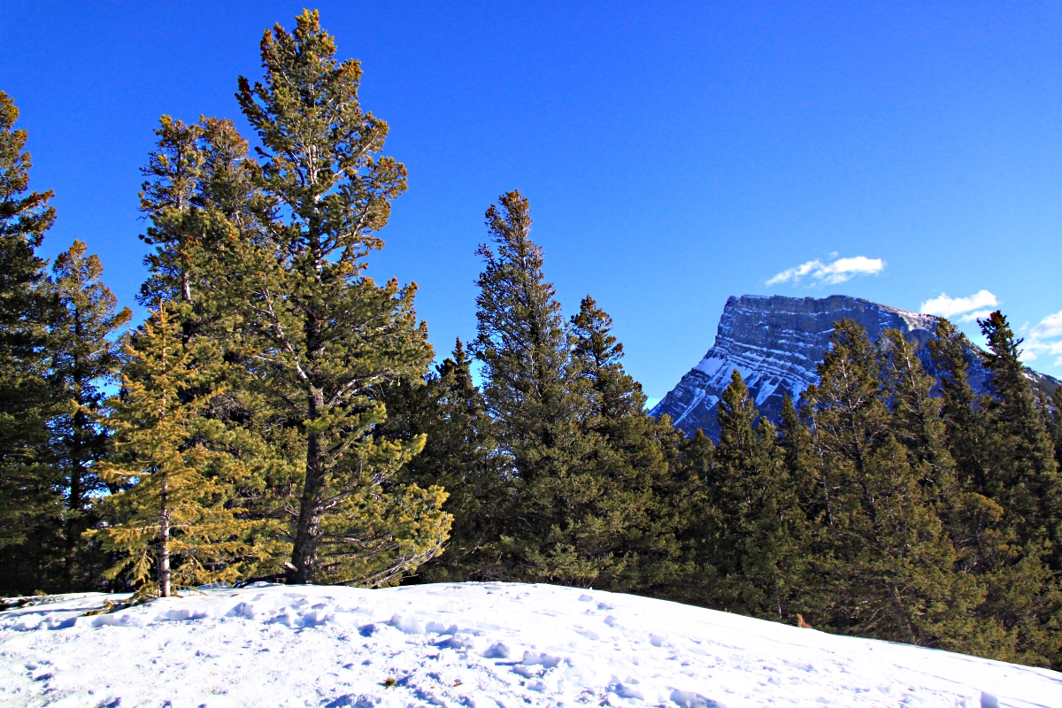 At 1,692 m (5,551 ft) it is one of the smaller mountains near Banff but rising 1000 feet straight out of the town the Tunnel Mountain Trail is much used by locals and visitors. That’s what I did with the afternoon of my day off from skiing.