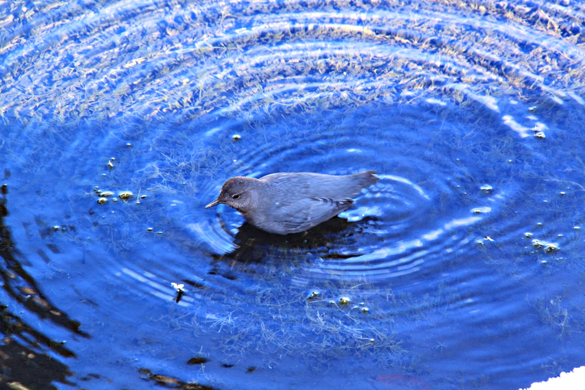 While looking at one area of open water I noticed concentric ripples on an otherwise completely mirrored water. Looking closer I spotted a small bird, the size of a UK blackbird (the unfortunately named Turdus merula) close to the water’s edge, swimming and then diving underneath to emerge seconds later, water droplets shedding off its back as if coated in silicone and with what looked like tiny snails and worms in its beak. It seemed unconcerned at me being there until I inadvertently cast a shadow across it and it swam away in a huff.