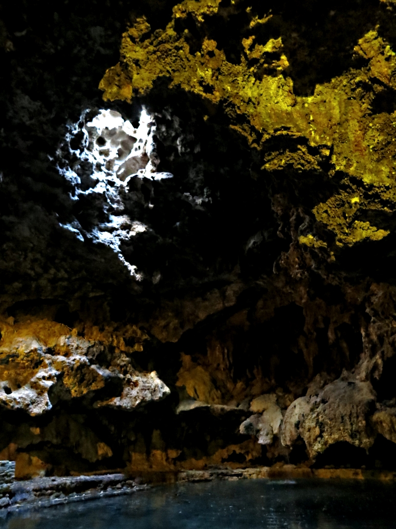 However, though I wanted to visit the Cave and Basin for its historical and ecological importance I had a much more prosaic reason. What particularly interested me was the amazing microclimate which is created. In very cold weather, such as experienced recently, clouds of water vapour can be seen rising from the springs as the hot water trickles down the hillside and this freezes in thick hoar frost over the vegetation. With no snow in recent weeks to cloak the trees, the effect is very evident. Paradoxically, it creates a strange frozen world above the steaming water.