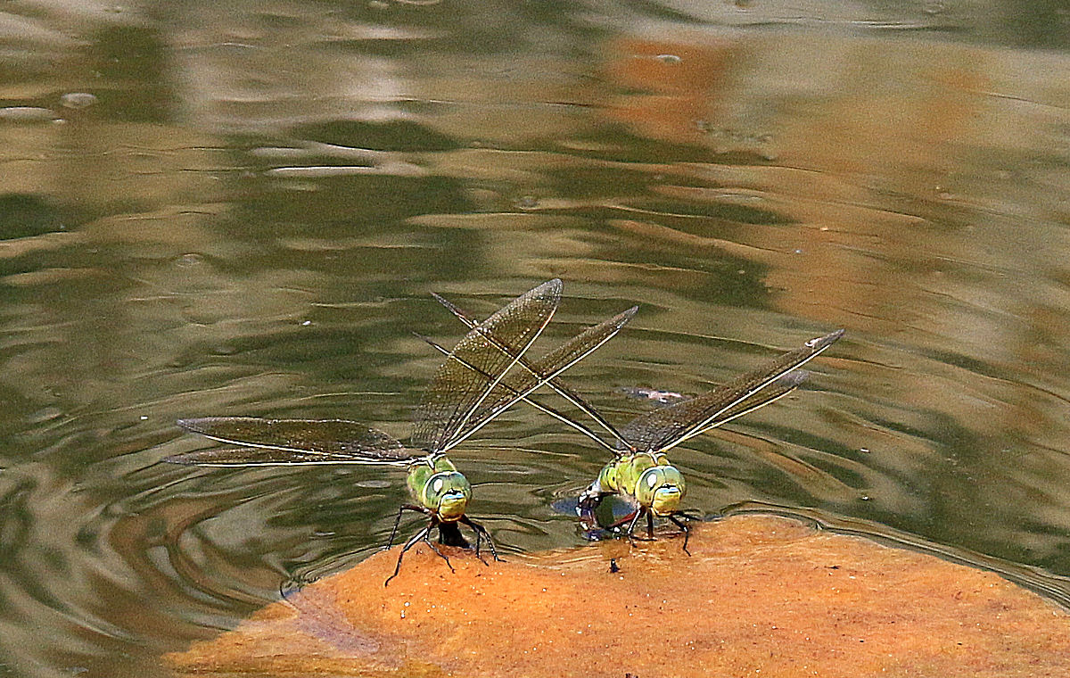 They appeared a couple of times after that but by then my attention had shifted to dragonflies which were homing in on a piece of floating sponge rubber as a base for laying eggs and indeterminate aerial activity.