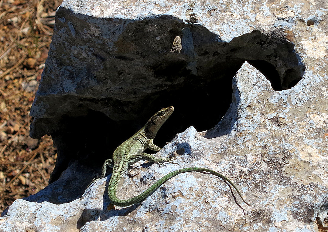 Not so easy to spot are the Painted Dragon Lizards, especially when attention wanders after 5 hours walking and thoughts are turning to a cold beer at the end. If they freeze before you catch sight of them they are invisible. At least I assume that to be the case as …… I don’t see them. But one I did see on the return leg of the walk went straight into a narrow but shallow fissure in the limestone. It was still in view when I peered inside so I photographed it. Uniquely, having caught my eye before it made a dash for safety, I then caught its eye.