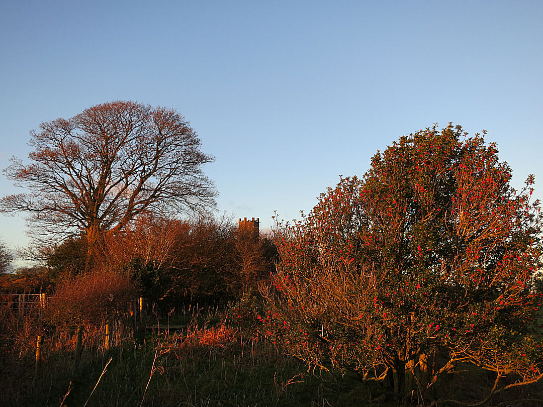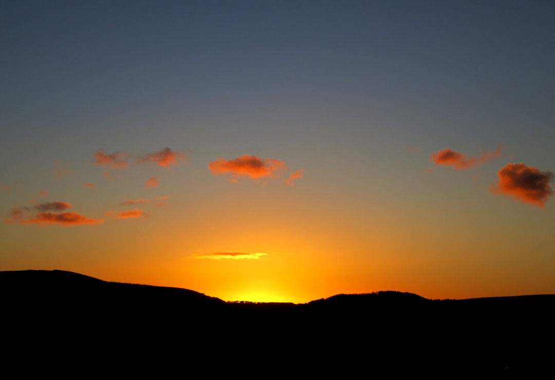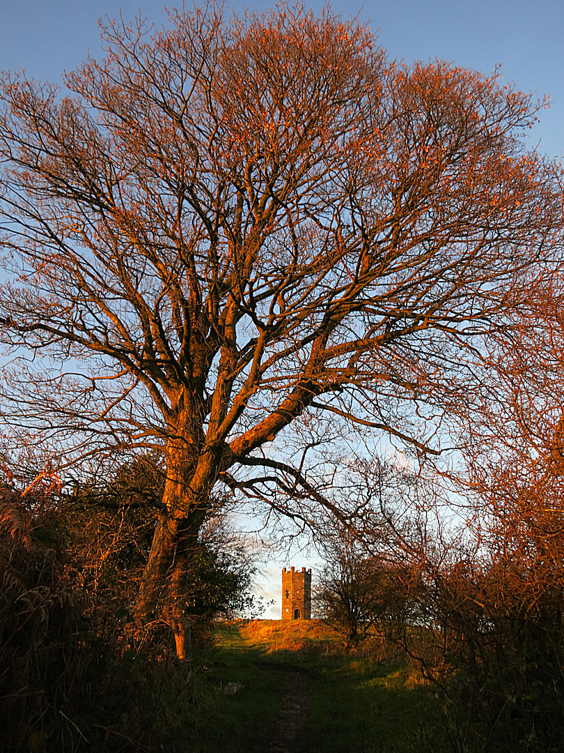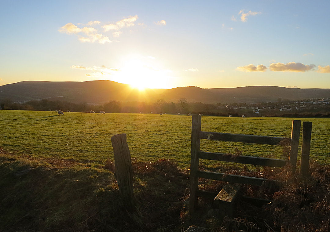At the southern tip of the Brecon Beacons National Park and around 1000 feet ASL, the Folly Tower above Pontypool is 30 minutes away at a brisk pace and offers great views in all directions. Visibility was crystal clear as the temperature dropped, humidity condensing out, cold air unable to evaporate the moisture in ground sodden from previous weeks of rain and mist. With clear skies there would soon be a ground-frost, an air-frost by early morning, but huddled in a polar-fleece I sat and watched as the sun sank slowly behind the mountain ridges ranging away to the west in a clichéd golden glow.