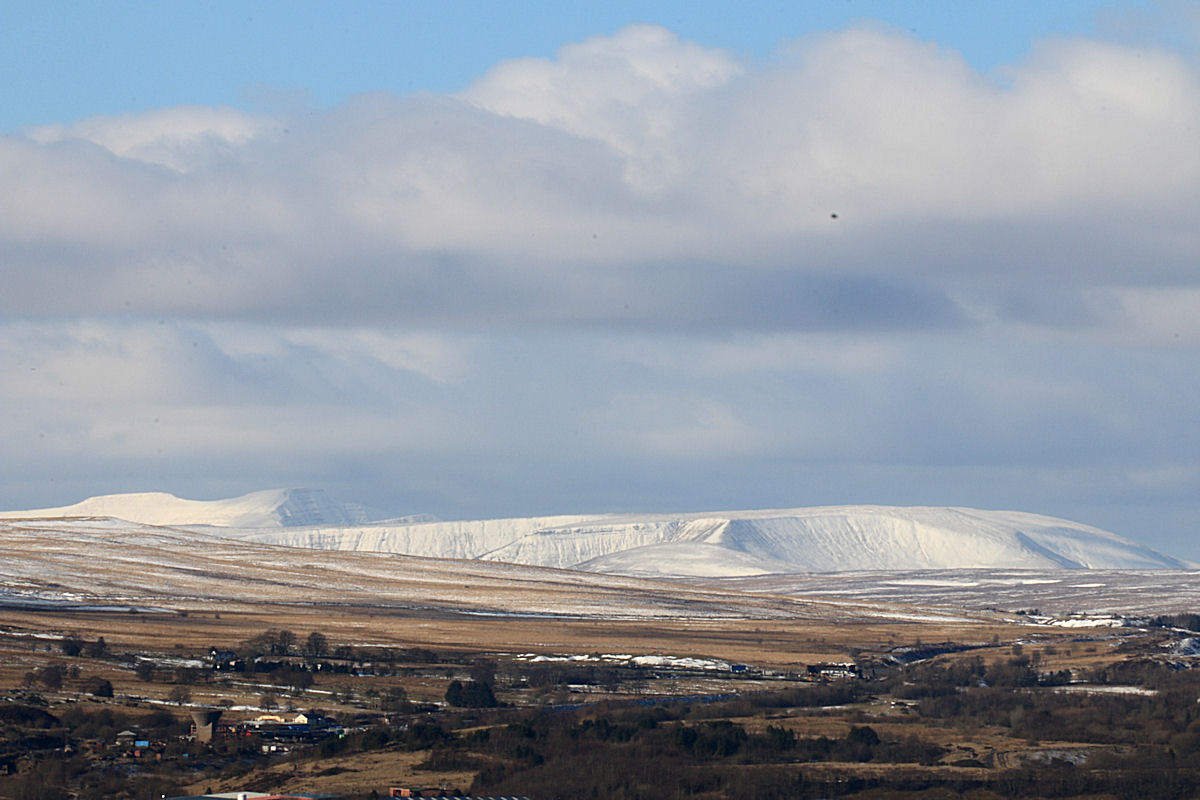 The ridge is the southernmost tip of the Brecon Beacons National Park, the boundary reaching down from the ridge-line to the Abergavenny and Brecon Canal a thousand feet below.  The height difference is enough to ensure that temperatures in the valley struggling to reach a heady 2oC mid afternoon, have up there remained below freezing ever since I arrived home.