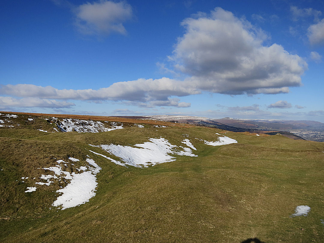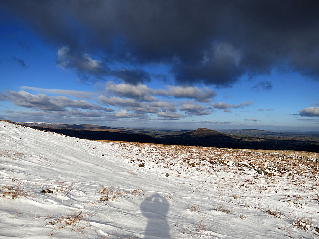 By far the most enticing view on the day was towards Pen-y-Fan and Corn Du, gleaming white with still a full covering of snow.  “Maybe tomorrow” I fantasised, but inwardly grimaced because I knew the sunshine was a ‘One Day Only’ offer.  The forecast for the next day and beyond was back to grey and damp. I consoled myself with the knowledge that I didn’t have to take the car out of the garage.  I had got to the ridge-top in half an hour from the house and then northwards along it the 13 miles to Abergavenny and saw on-one else the whole way.