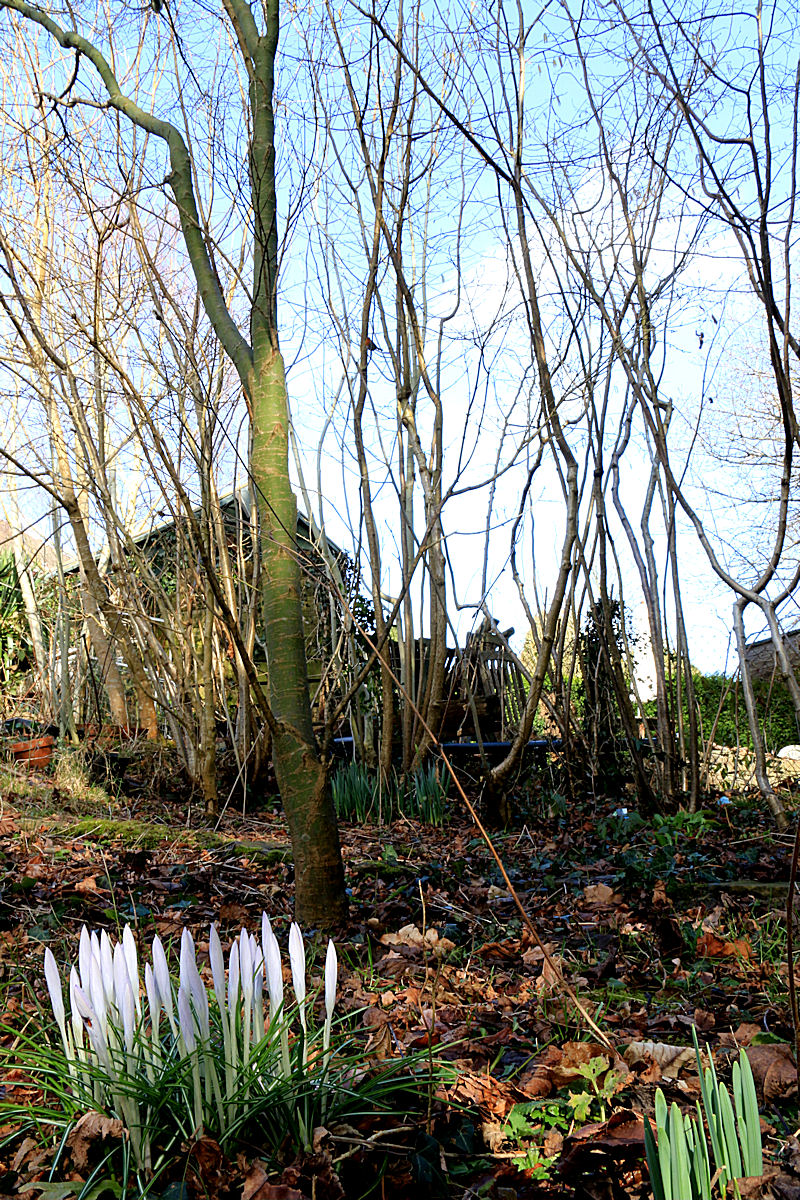 In the meantime, with nothing as yet in flower on the mountain behind the house, I take the camera down the garden now and again and photograph the spring flowers emerging through the fallen leaves in the ‘Acer Glade’, the trees planted to reduce the amount of maintenance needed down there.