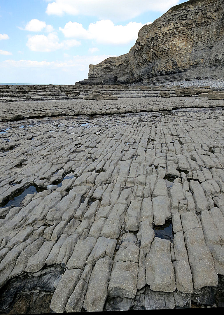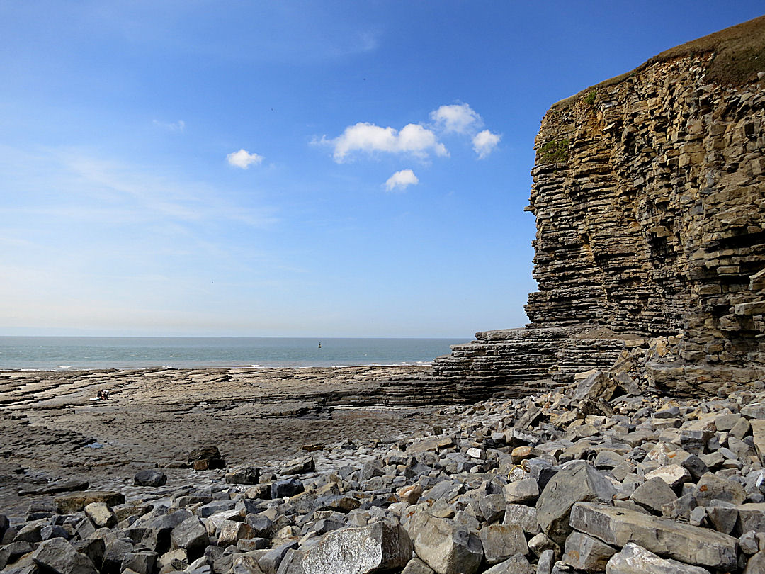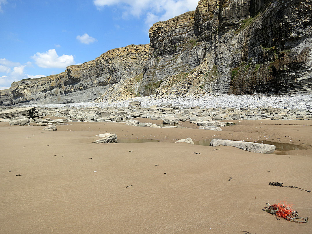 First, in sharp contrast to Symi where variations in sea level can be ignored, it is essential to check the times of tides before you commit to walking along the spectacular foreshore of the Glamorgan coast. On the day, a low tide at 12.15 gave us plenty of time to get around the promontory south of Macross (a village, not a Greek island), meander leisurely westward over the rocky and deeply fissured wave-cut platforms and expanses of sand to the next promontory south of Monksnash.