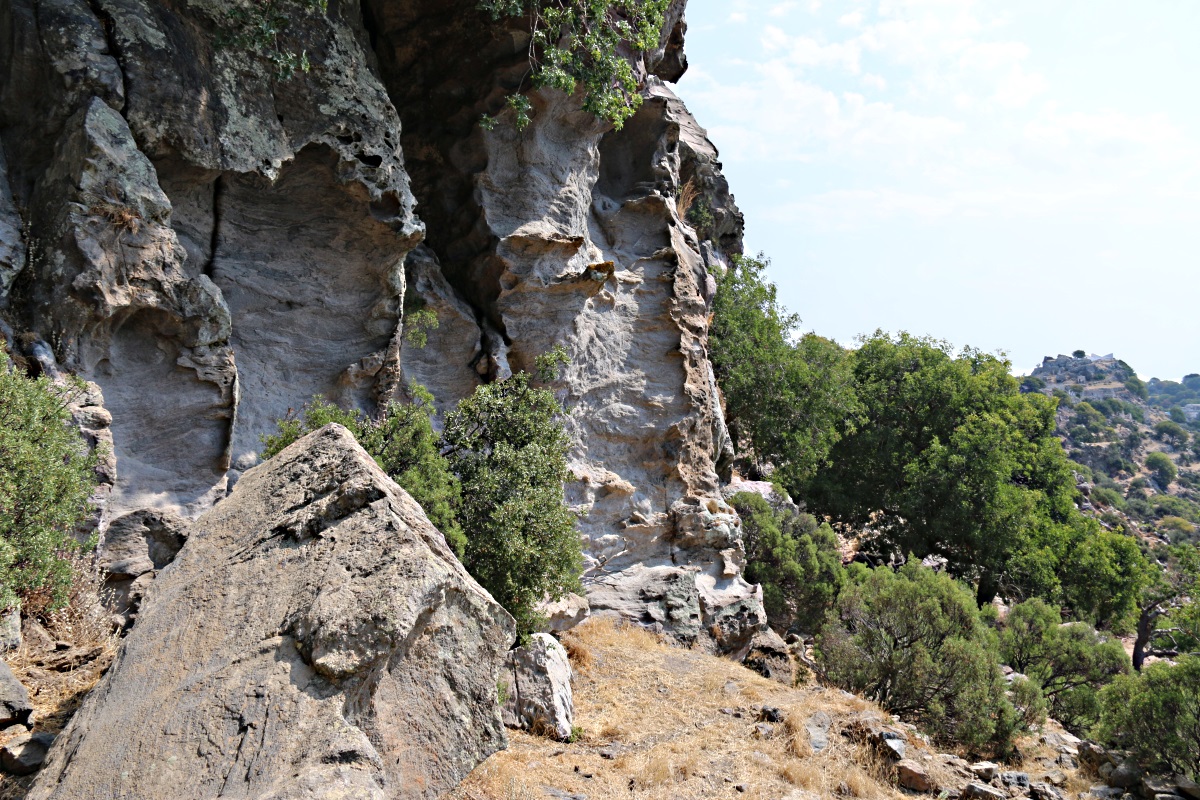 The first part of the trek is up the old, well-trodden stone-paved kalderimi to the Paleocastro which is impressive even after many visits.