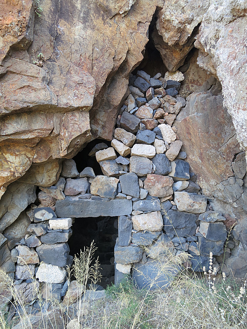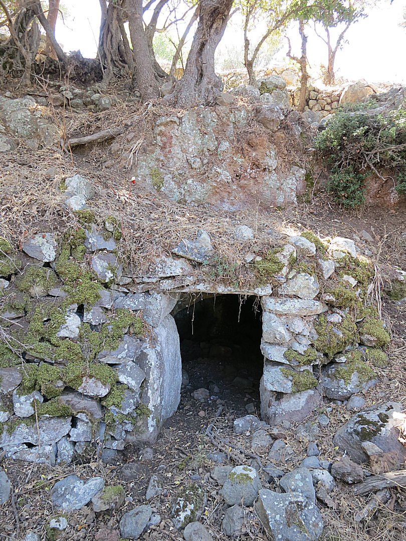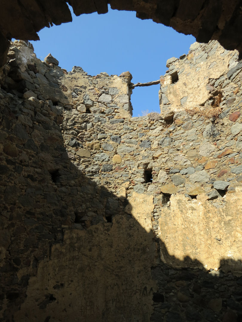 One dwelling I found went back three ‘rooms’ each about 4-5 metres long including the cave at the back.  The cave had old agricultural implements scattered around including two hand-ploughs, one with a metal tip for greater effectiveness.  To the side of the middle room was a tiny chapel, whitewashed around the door, as is the custom, with a small altar inside.  The room at the front was a ‘kazanario’, a still for producing the local hooch.  During the Italian occupation local men used to meet in the kazanaria where they could discuss matters more freely.
