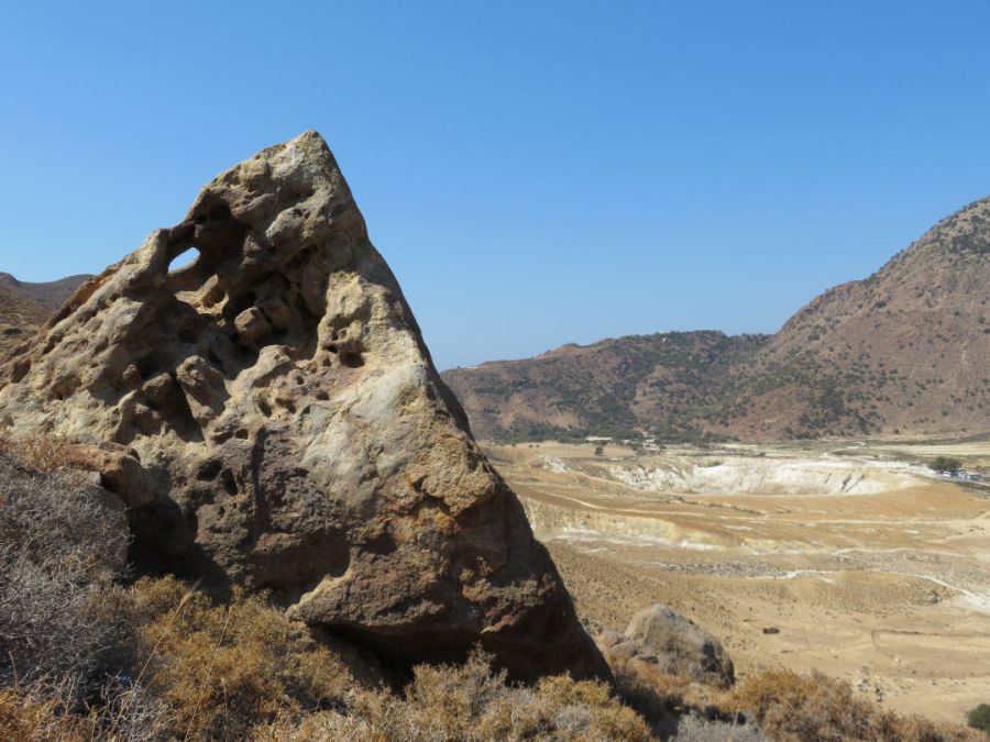 Looked at from the opposite direction it’s a harmless but intriguingly shaped rock with the craters in the background, reminder of where I’m heading