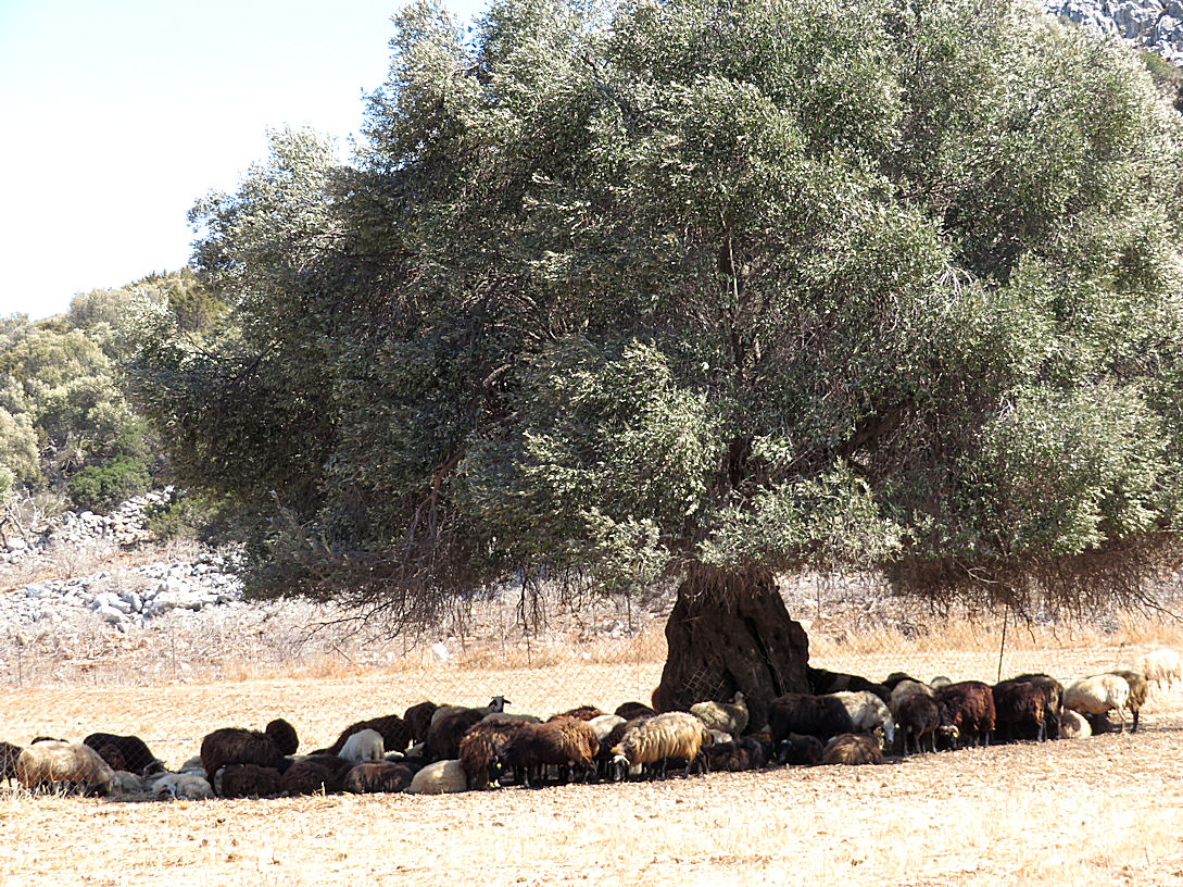 After the unusually high temperatures over several weeks on the island before I came, the vegetation is more than usually parched and crisped.  But this is just a continuation of years of rising temperatures and drought. Fig trees from which we picked figs at Gria even 15 years ago are now dead and crumbling into the dust, being finished off by ants or termites.  Many trees are looking stressed, leaves on the evergreen holly oaks looking distinctly jaded and off-colour. By contrast, in the old ruins in the Horio, fig trees seem to be thriving, exploring sternas and vothras with their roots, ready supply of water and nutrients.