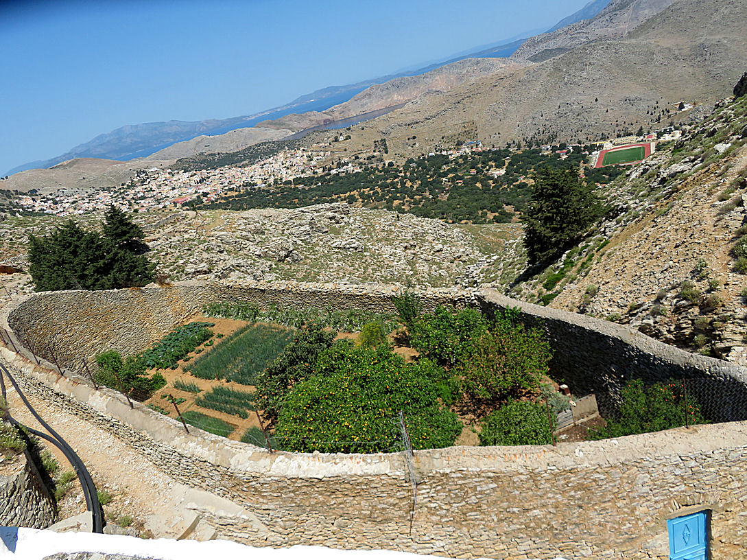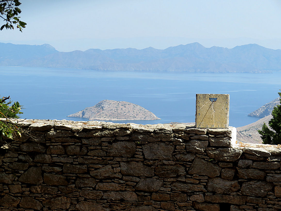 Trying to acclimatise to the intensifying heat, it has been great to visit many of the iconic places from previous visits, the Viewpoint above Horio (Walk 1 on the Greek Island Walks page), the walled garden at the monastery of Zoodohou, the rock slab at Lappotoniou Castle, and the monastery of Nikitas Kotikas with its sundial.