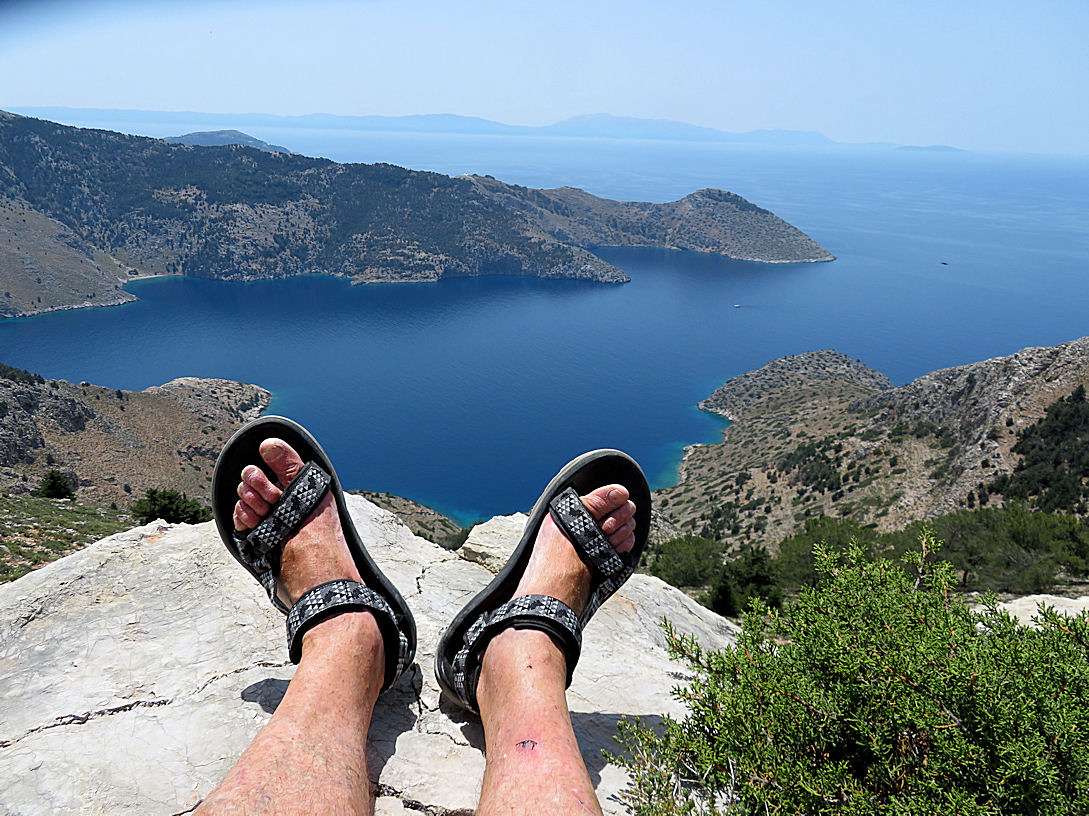 One of the ambitions for the trip was for a friend and I to explore a cave found a couple of years ago. The friend is a caver who has done some climbing, I’m a climber who has done some caving. Between us we fetched out enough ropes and other kit to make the vertical descent and prusik back up (heaviest bag I‘ve ever brought to Greece). The plan was to do the reconnaissance and set up, then return a few days later for the descent. We found the cave and with a borrowed cordless hammer drill fixed an eye-bolt at the top in the most convenient place for the job. Sadly, my friend twisted his ankle badly on the way back to the car – so the exploration will have to wait for another visit.